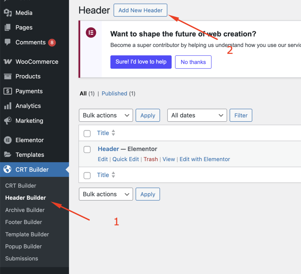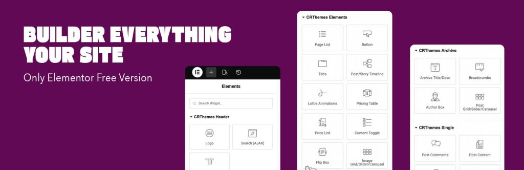To build a website, we only need the free version of Elementor and CRT Manage.